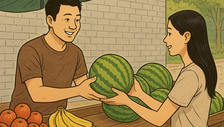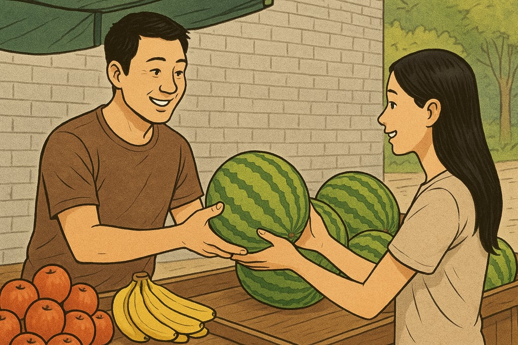 Lì: Me gusta la sandía. ¿Cuánto cuesta la sandía?